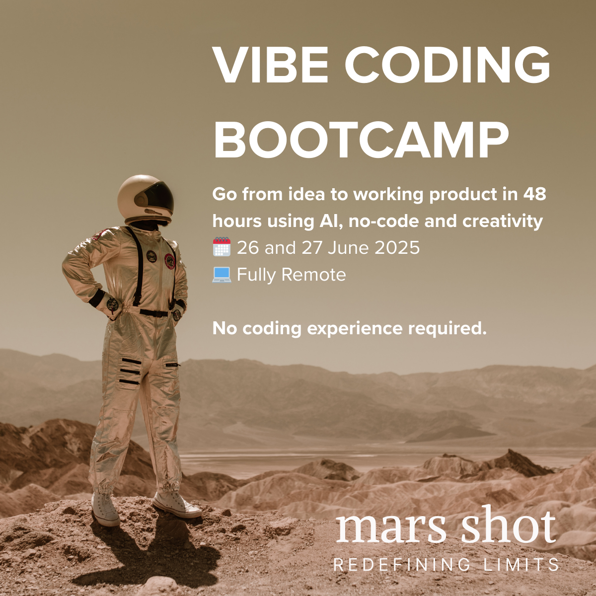 This agenda, including the tools and platforms listed, is subject to change. Mars Shot may adapt the flow and resources based on the participants’ profiles, the latest AI developments, and learning goals — always with the objective of delivering the most relevant and impactful experience possible.